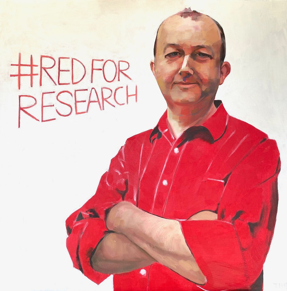 “I loved the way he has his sleeves rolled up ready for business & I made the background white to stress his clinical role & to emphasise the #redforresearch where people can read more about it.”
